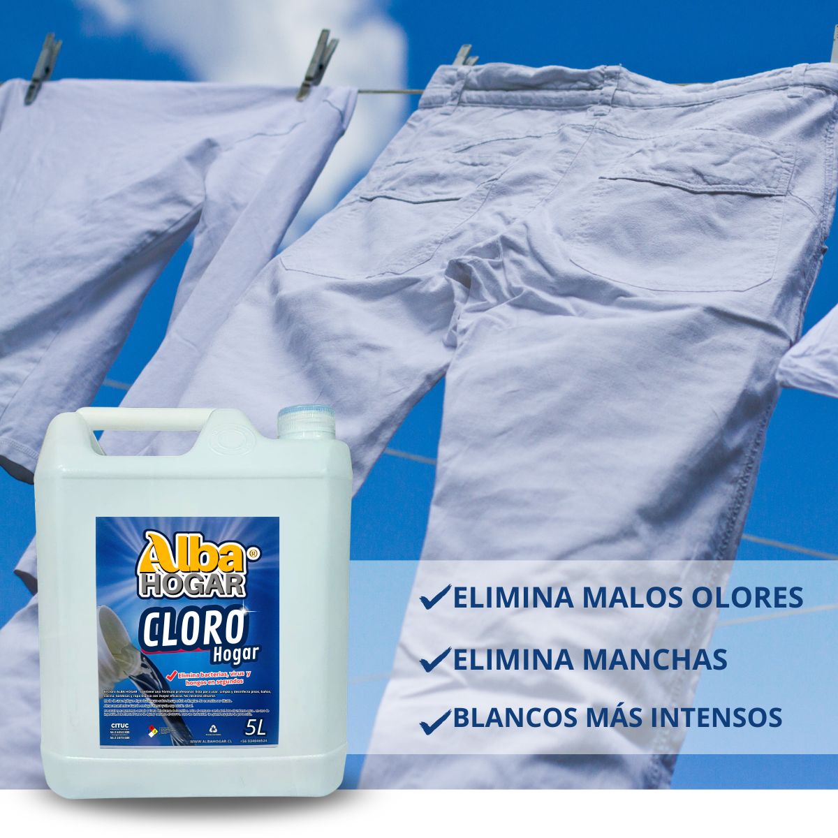 El Cloro Hogar 5 Litros Alba Hogar Desinfectante ha sido creado con una fórmula profesional, pensada para entregar resultados visibles en segundos.