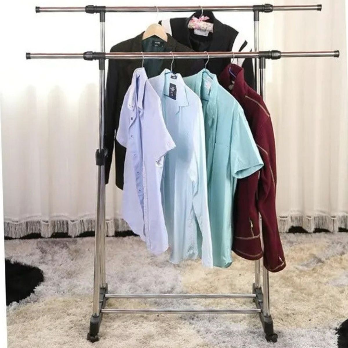El Perchero Doble Barra Con Ruedas Exhibidor de Ropa 130x74x37 es perfecto para quienes necesitan un soporte confiable y funcional. Ya sea para organizar la ropa en casa o para exhibir prendas en una tienda, este perchero se adapta a cualquier necesidad gracias a su diseño sólido y ajustable.