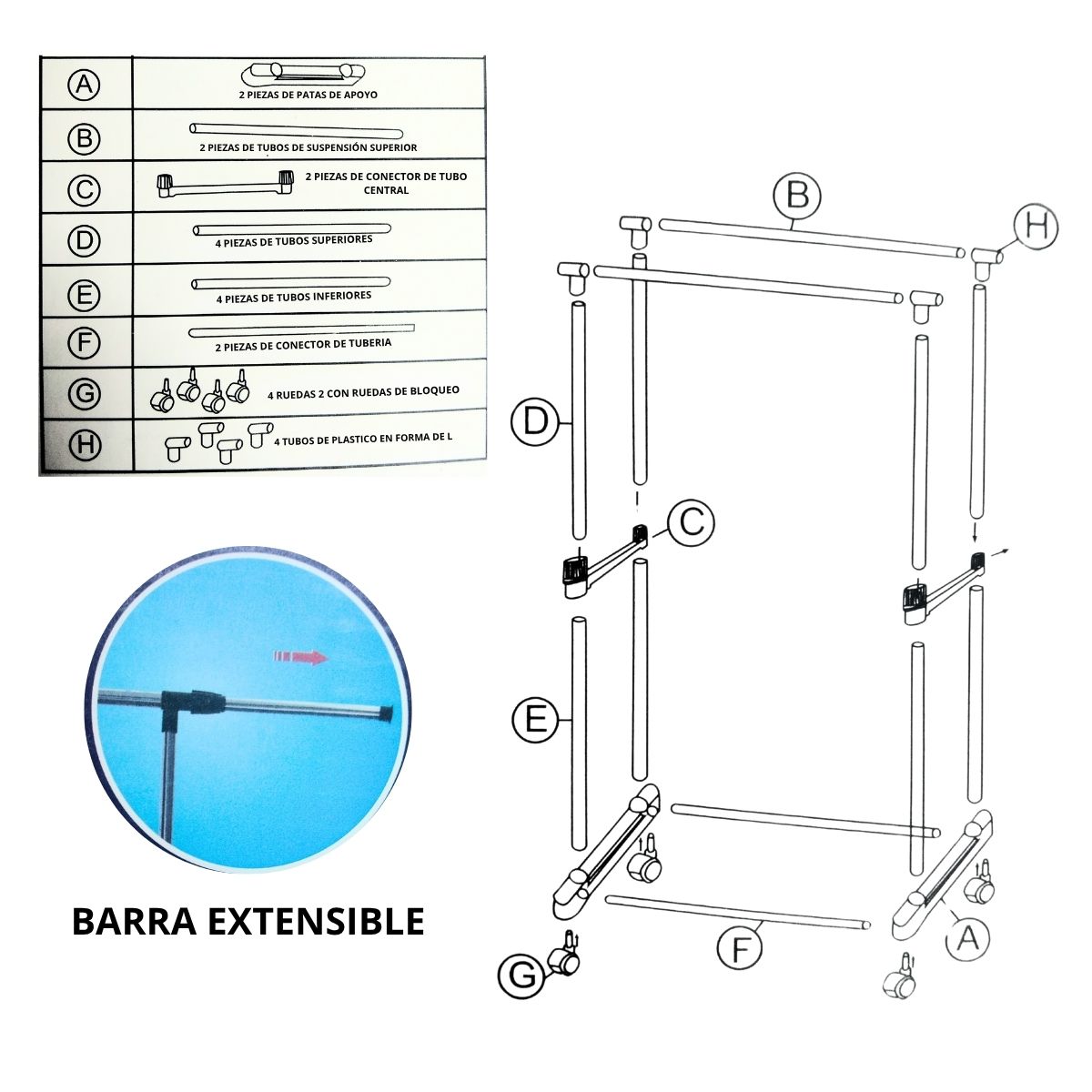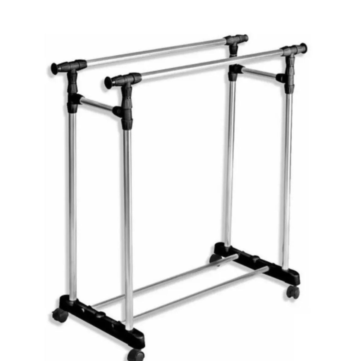 Perchero Doble Barra Con Ruedas Exhibidor de Ropa 130x74x37